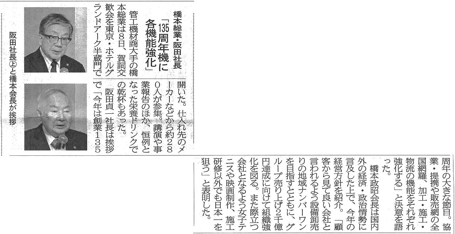 橋本総業・阪田社長「135周年機に各機能強化」